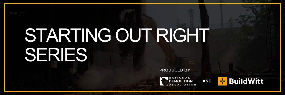 The National Demolition Association (NDA) and BuildWitt are proud to release the new 'Starting Out Right' Series, a collection of lessons and videos from demolition and safety experts that orient you to the world of demolition. In this series, you'll learn more about the types of demolition, what to expect on a demolition jobsite, key safety information, and much more.