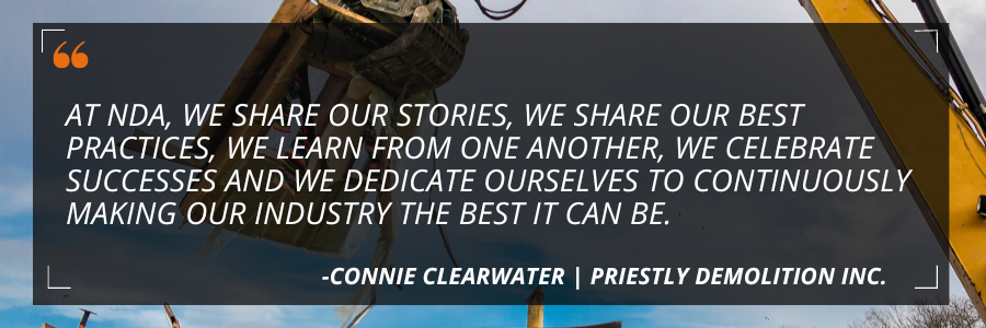At the National Demolition Association we help our members succeed and deliver work safely and profitably. We provide members and the demolition industry with the tools necessary to be leaders in environmental stewardship, safety, education, professional competency and government advocacy.